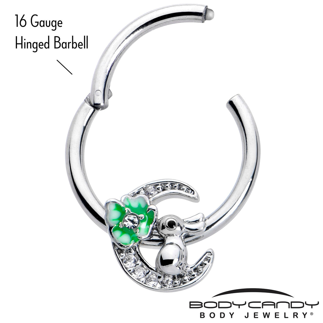 16G 3/8 Clear CZ Gem Rabbit On The Moon Green Hinged Segment Ring