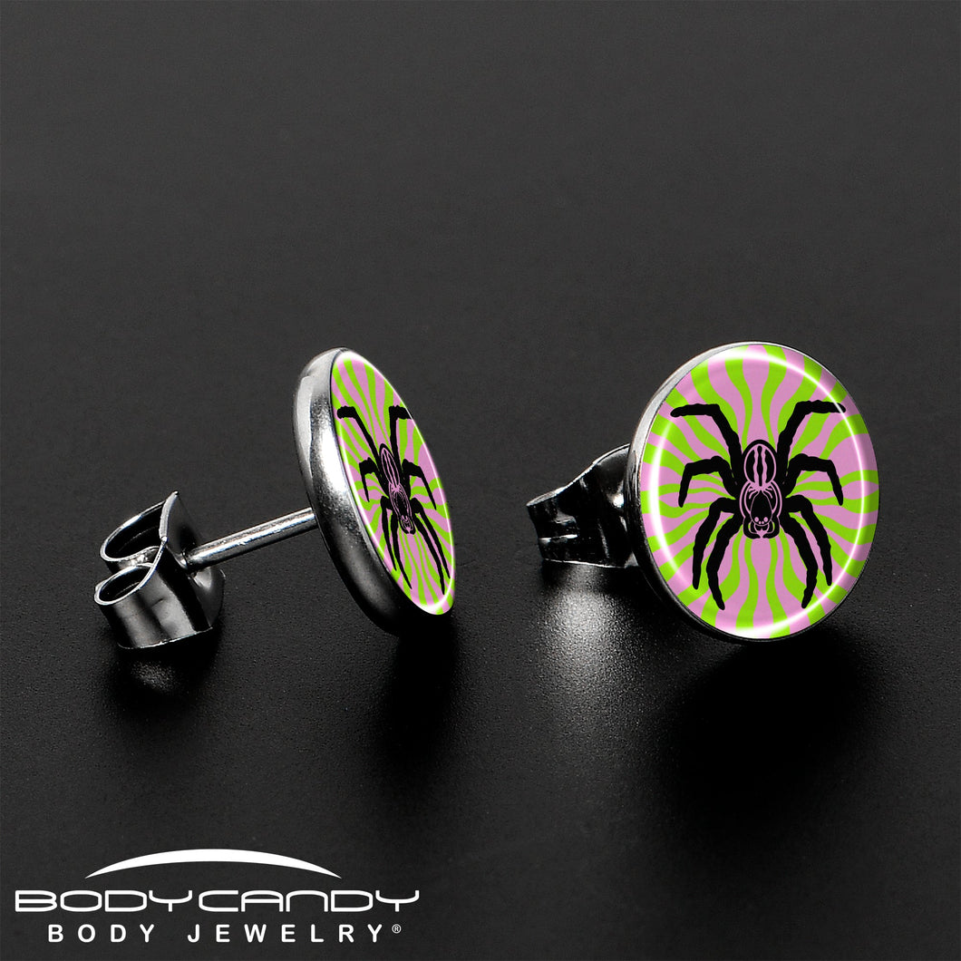 Hypoallergenic jewelry for sensitive skin.Psychedelic Spider Stud Earrings